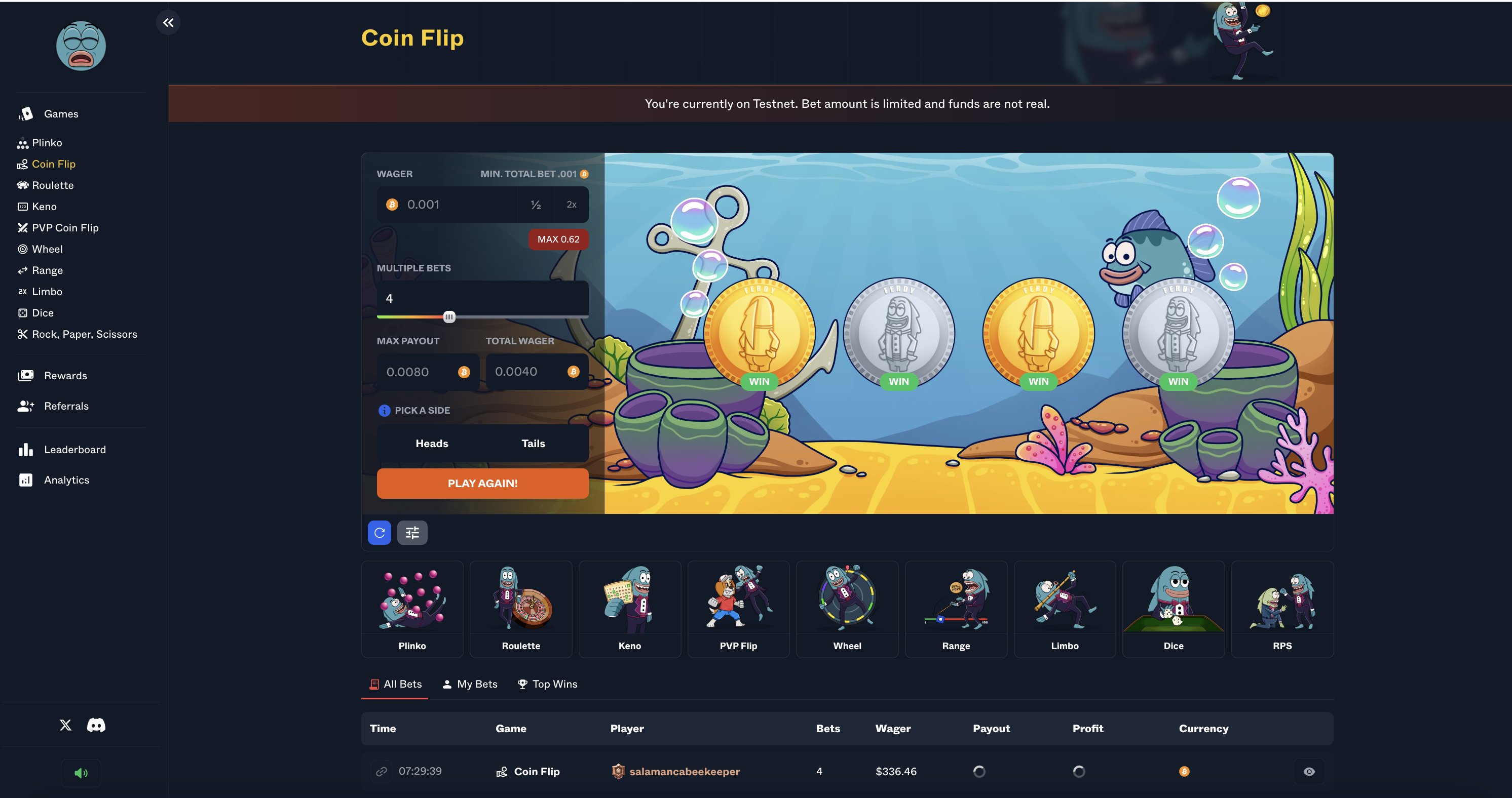 - FerdyFlip offers games like crash, dice, mines, coin flip, etc.